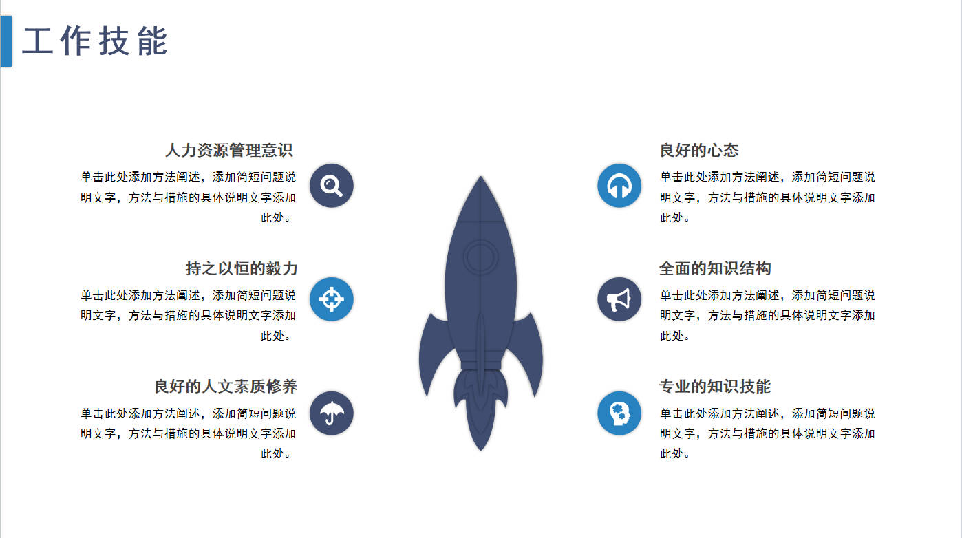 本作品内容为简约商务个人简历岗位竞聘PPT模板, 格式为 pptx, 大小17 MB, 页数为25,比例16:9, 请使用软件PowerPoint(2016)打开, 作品中主体文字及图片可替换修改,文字修改可直接点击文本框进行编辑,图片更改可选中图片后单击鼠标右键选择更换图片,也可根据自身需求增加和删除作品中的内容, 源文件无水印, 欢迎使用。 如认为平台内容涉嫌侵权,可通过邮件提出书面通知,我们将及时处理。