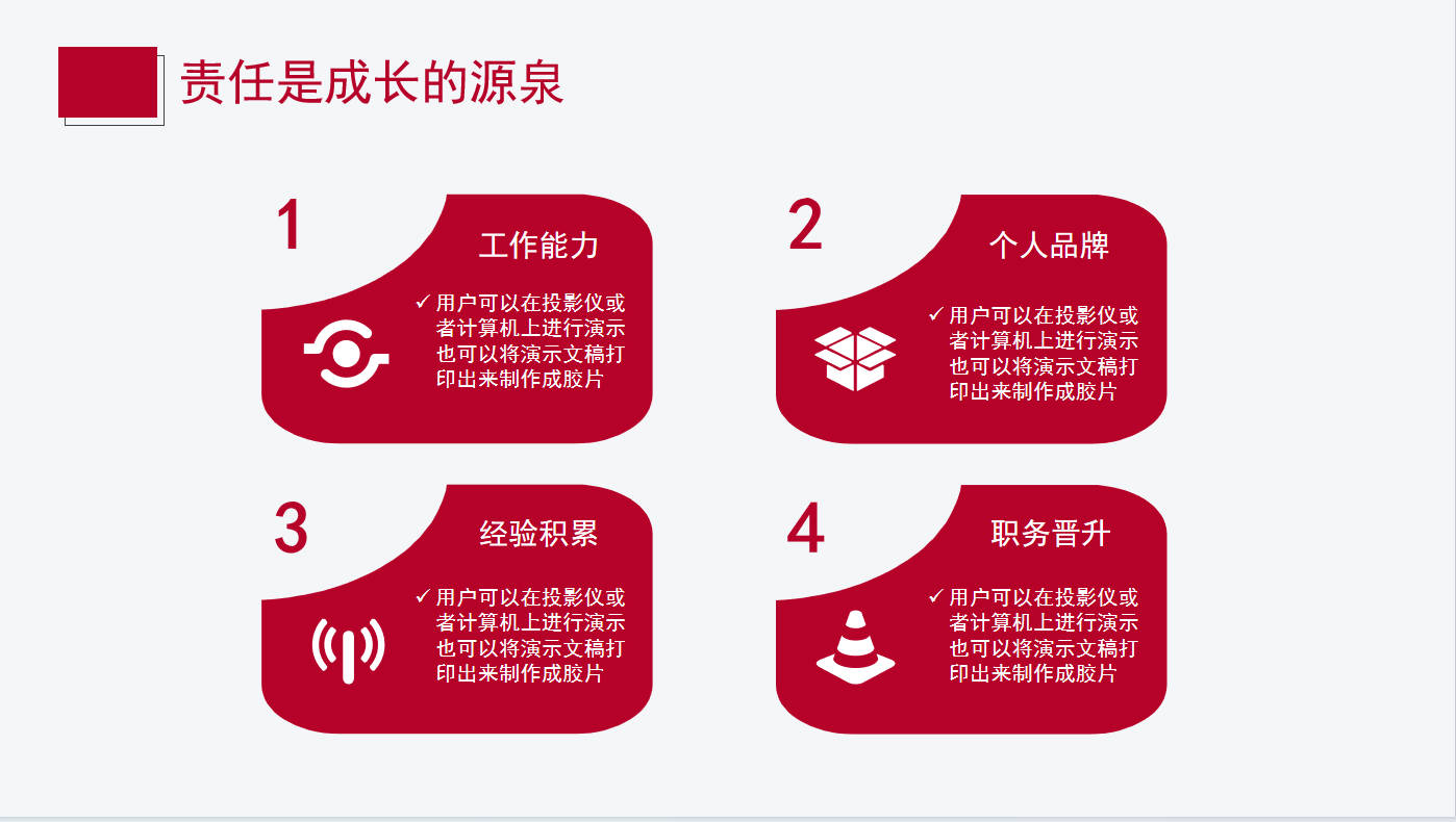 本作品内容为商务风企业公司文化培训PPT模板, 格式为 ppt, 大小8 MB, 页数为29,比例16:9, 请使用软件PowerPoint(2016)打开, 作品中主体文字及图片可替换修改,文字修改可直接点击文本框进行编辑,图片更改可选中图片后单击鼠标右键选择更换图片,也可根据自身需求增加和删除作品中的内容, 源文件无水印, 欢迎使用。 如认为平台内容涉嫌侵权,可通过邮件提出书面通知,我们将及时处理。