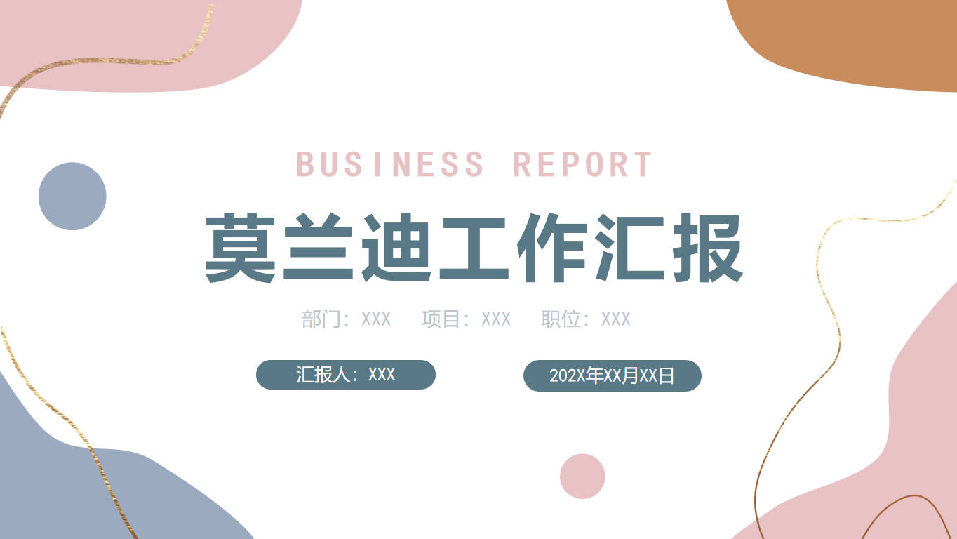 本作品内容为莫兰迪简约小清新工作总结汇报PPT模板, 格式为 pptx, 大小6 MB, 页数为24,比例16:9, 请使用软件PowerPoint(2019)打开, 作品中主体文字及图片可替换修改,文字修改可直接点击文本框进行编辑,图片更改可选中图片后单击鼠标右键选择更换图片,也可根据自身需求增加和删除作品中的内容, 源文件无水印, 欢迎使用。 如认为平台内容涉嫌侵权,可通过邮件提出书面通知,我们将及时处理。