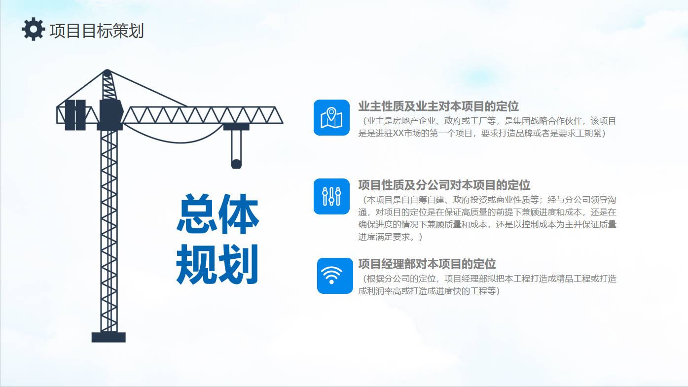 本作品内容为商务风工程项目策划汇报动态PPT模板, 格式为 pptx, 大小6 MB, 页数为34,比例16:9, 请使用软件PowerPoint(2013)打开, 作品中主体文字及图片可替换修改,文字修改可直接点击文本框进行编辑,图片更改可选中图片后单击鼠标右键选择更换图片,也可根据自身需求增加和删除作品中的内容, 源文件无水印, 欢迎使用。 如认为平台内容涉嫌侵权,可通过邮件提出书面通知,我们将及时处理。