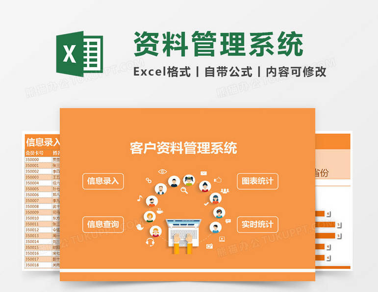 本作品内容为客户资料Excel管理系统, 格式为 xlsx, 大小1 MB, 请使用软件Excel(2016)打开, 作品中主体文字及图片可替换修改,文字修改可直接点击文本框进行编辑,图片更改可选中图片后单击鼠标右键选择更换图片,也可根据自身需求增加和删除作品中的内容, 源文件无水印, 欢迎使用。 如认为平台内容涉嫌侵权,可通过邮件提出书面通知,我们将及时处理。